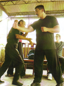 I later asked what was unique about Wing Chun and its training. Master Lo stated that Wing Chun emphasizes actual reactions centered on feelings rather than concentrating on techniques and forms. Students learn to trust the feelings generated by their bodies rather than what they see with their eyes. Chi sao is a non-cooperative exercise which allows students to react to unexpected situations rather than simply going through choreographed movements. Wing Chun focuses more on agility and skill rather than brute force, and is first and foremost about protecting yourself. Students of all ages and sizes can thus be effective with the proper training. As Master Lo elegantly put it, “No one can touch you – that is good kung fu.”